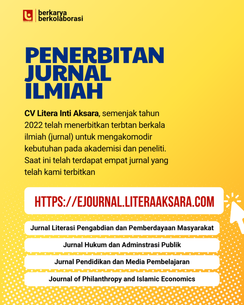 CV Litera Inti Aksara adalah penerbit buku dan jurnal yang berkomitmen dalam meningkatkan literasi di Indonesia. Kami berkolaborasi dengan para dosen, peneliti guru, aktivis, penulis dalam menyediakan buku dan jurnal berkualitas. Terbitan kami telah tersebar di berbagai market place dan Gramedia. Sementara jurnal ilmiah yang kami terbitkan telah terakreditasi dan terindeks. Sementara keanggotaan Ikatan Penerbit Indonesia (IKAPI) melalui No. 312/JTE/2026